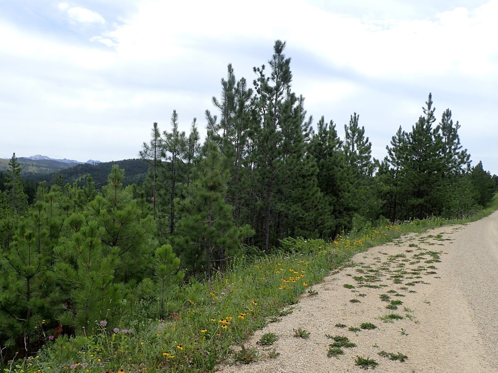 | Ridge line view of Harney Peak from a wild flower lined road on the Hill City route. |